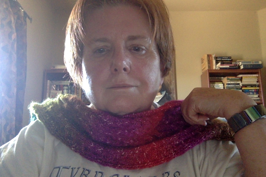 I’m still knitting to keep the anxiety down. Here’s my latest scarf and it’s in my store: Deb Thuman Art http://debthumanart.com