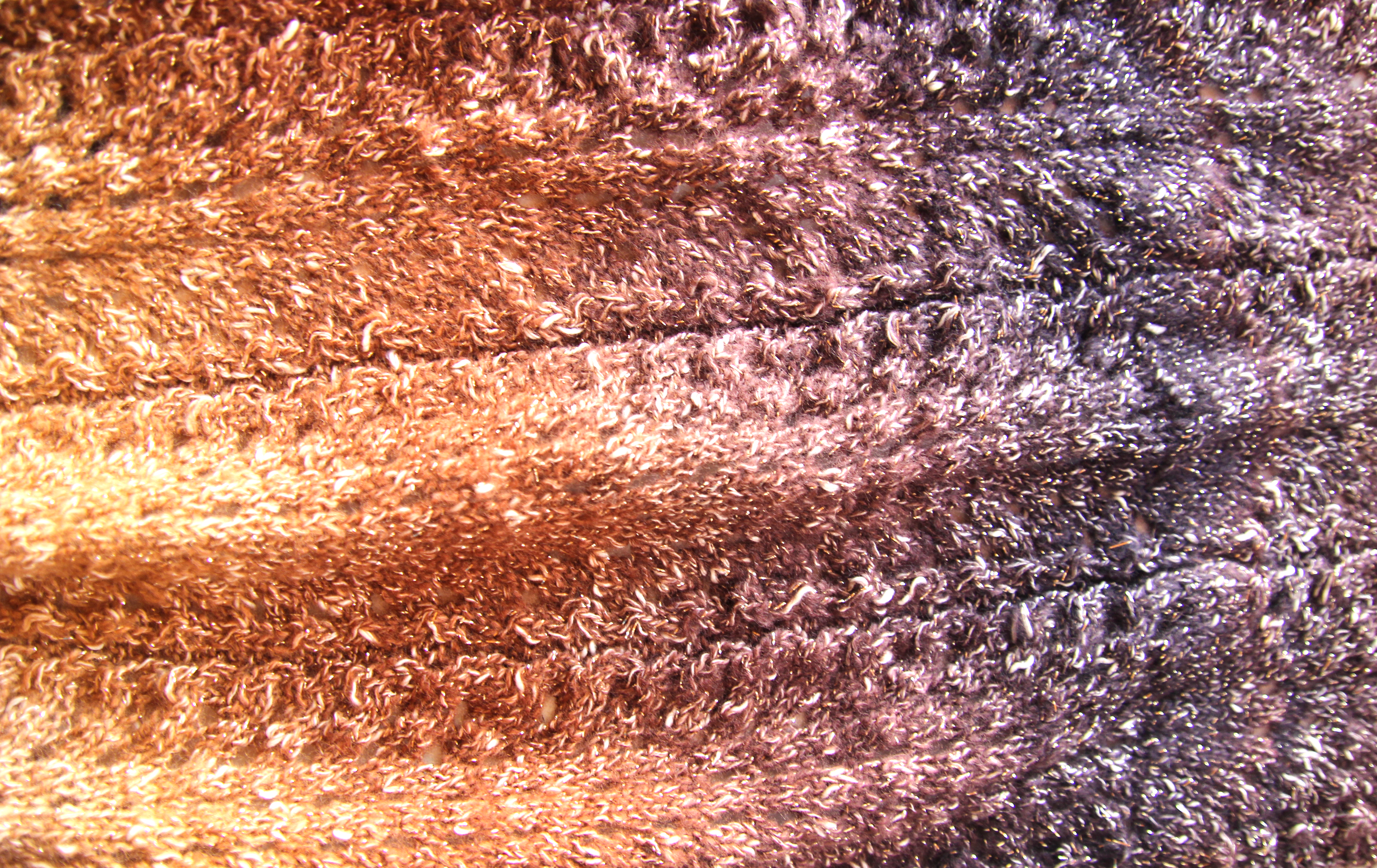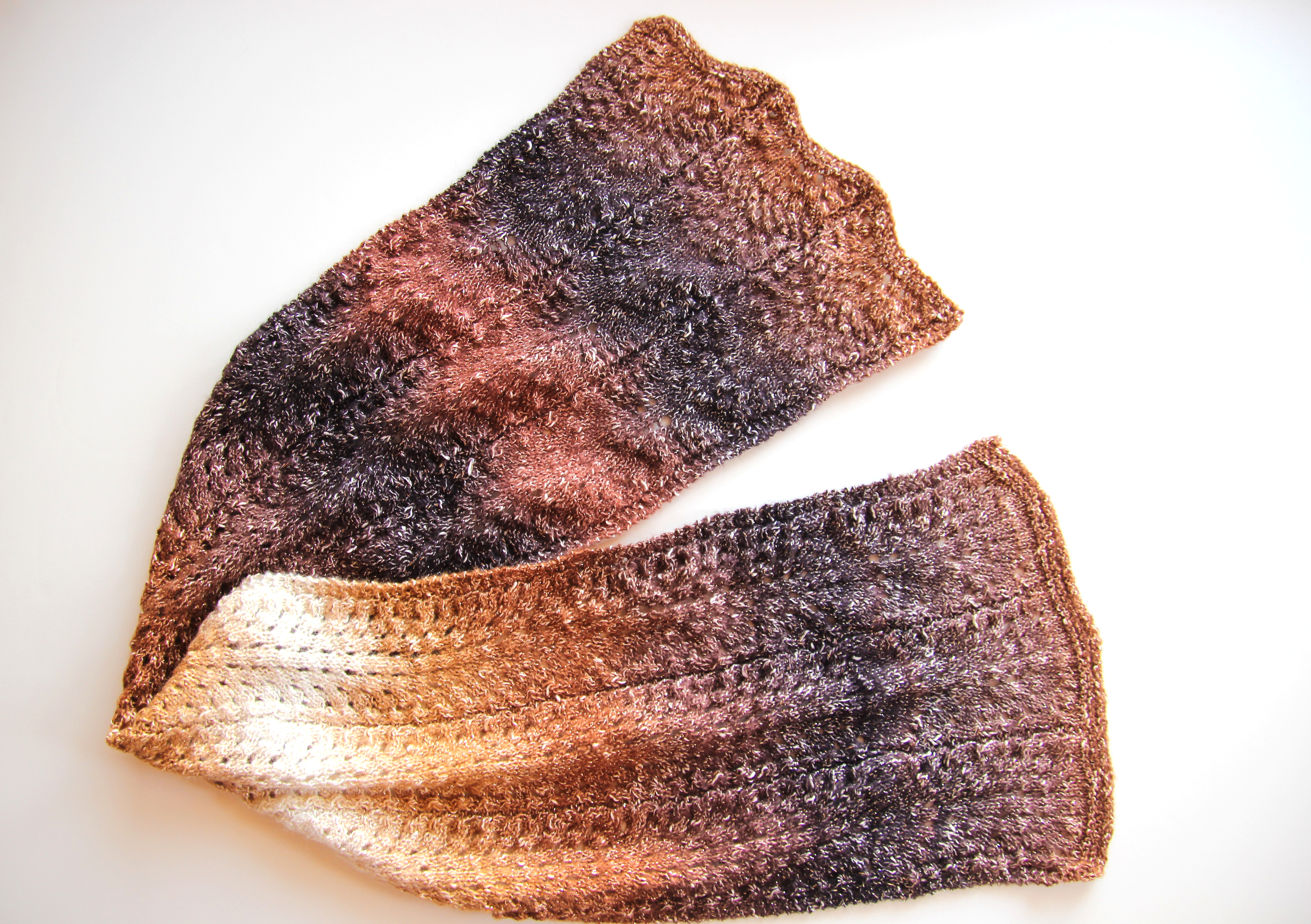 I finished another scarf. And I can’t stand long enough to block it and photograph it. And so it won’t go in my store for a while.