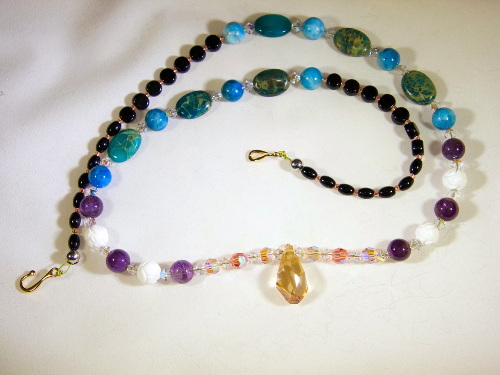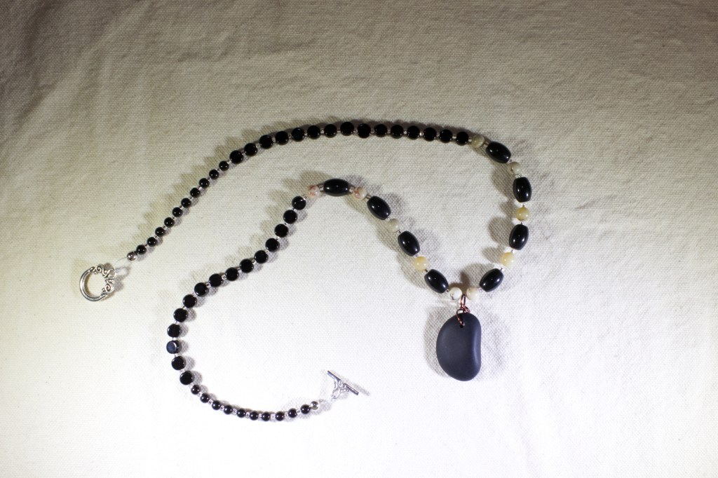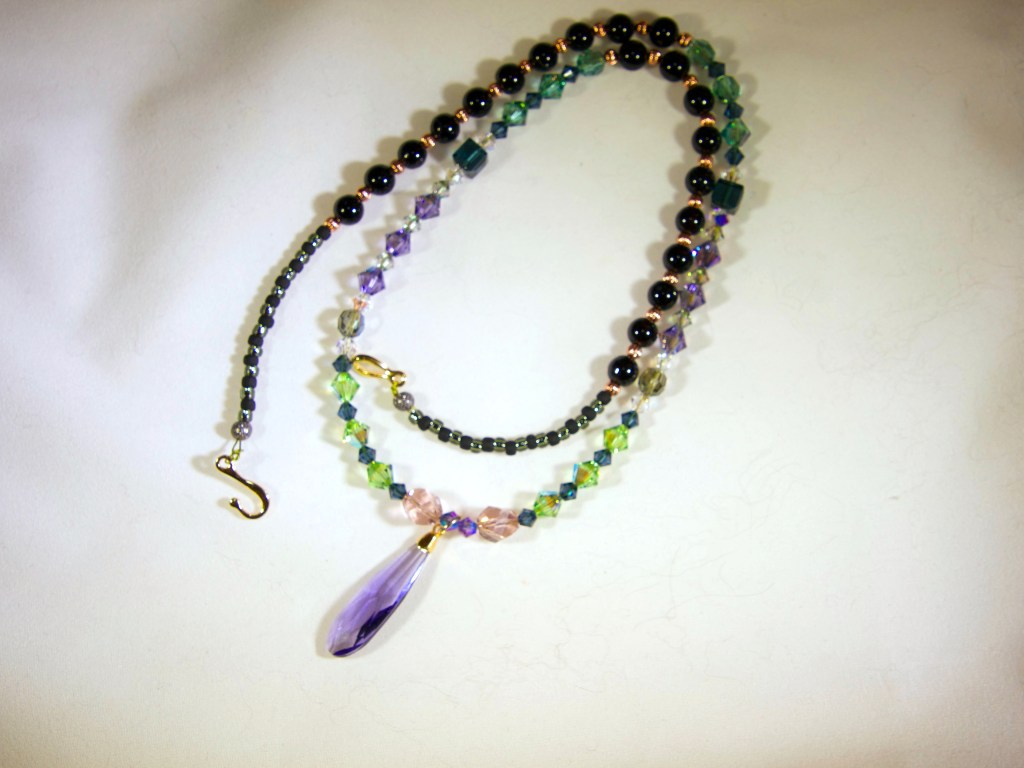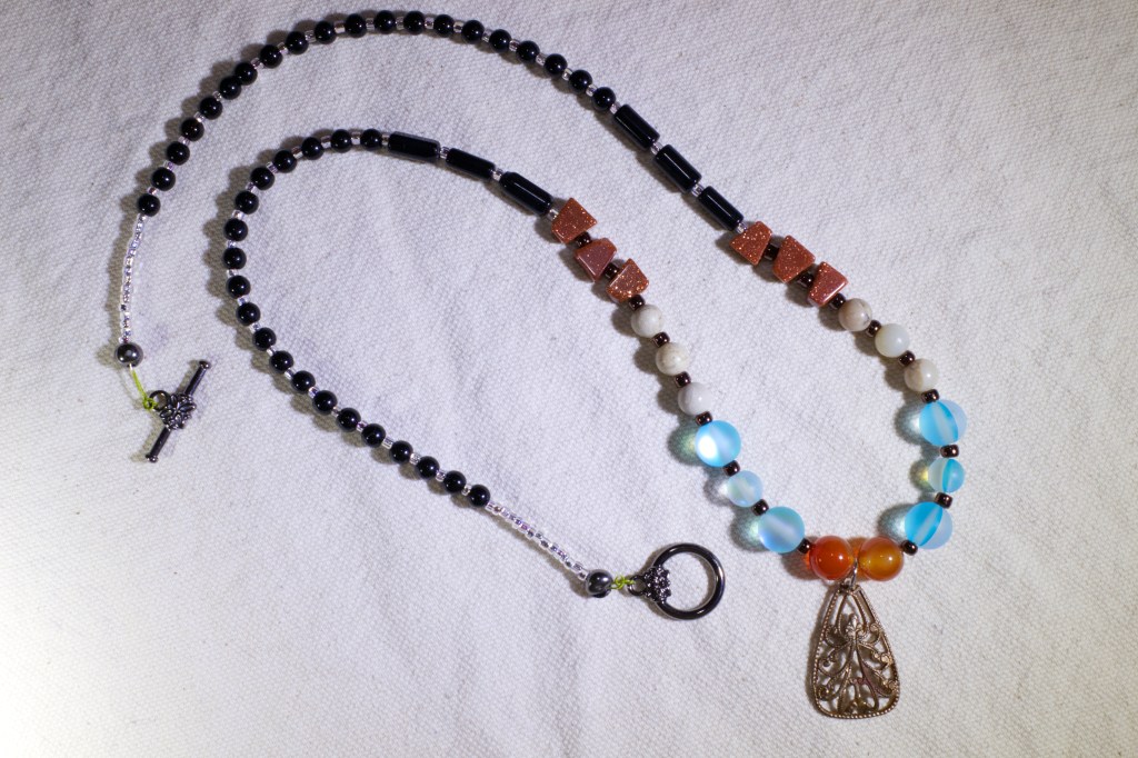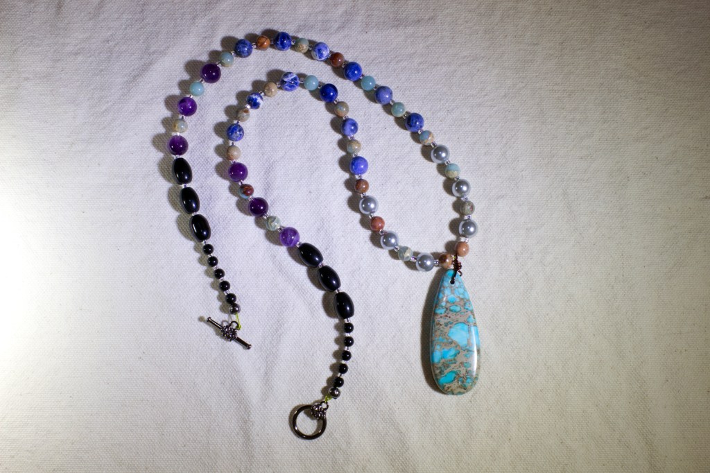 The above necklaces are for sale. I’ll eventually get them into my online store once I figure out the price for each. Jewelry prices are a function of cost of materials, time to make and how much I have to swear at the piece while making it.