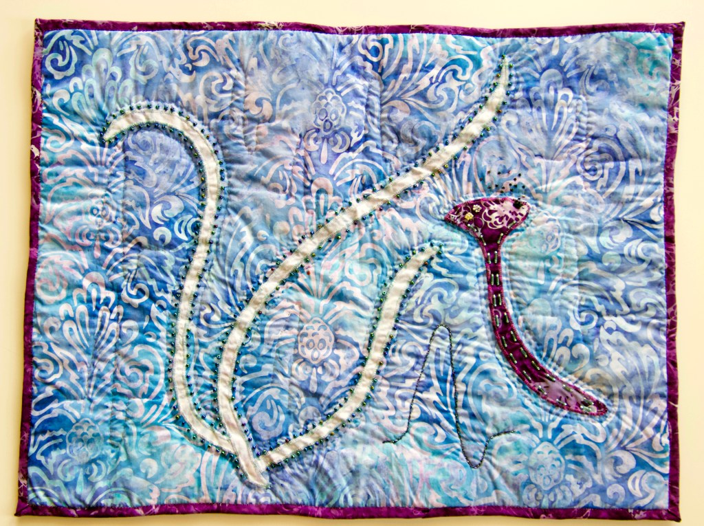 In a few weeks, I’ll be participating in a symposium on campus. Being manic, I decided it would be a great idea to bring two art quilts and talk about suicide from the perspective of nearly killing myself and the perspective of someone left behind after suicide of a friend. I have two nightmares about this. No one showing up and 500 people showing up. If nothing else, this is going to be an interesting experience.
