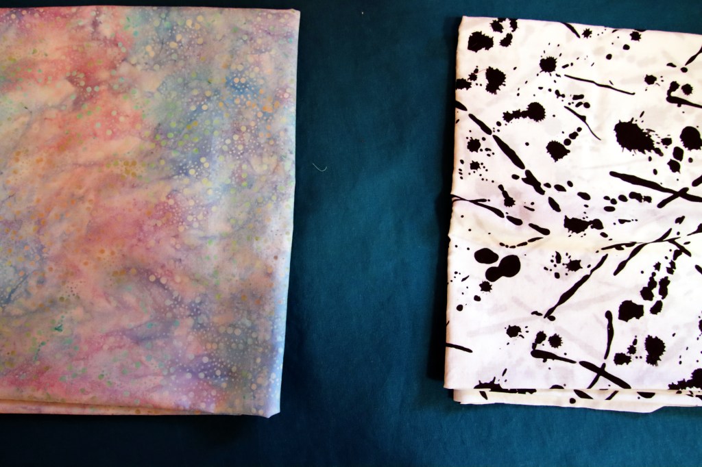 I listened to the suggestions and comments made when I asked about fabric combinations for a quilt about suicide. I took one comment and ran with it. Here’s the semi-final, maybe final combination. The splotch print represents the emotional mess left after someone commits suicide. The other print represents how rational, logical and normal it felt when I was deciding how, when and where to kill myself. Except it’s not logical, rational or normal. I’ve got to let that combination sit for a bit to see if I still like it. Then, it’s time to trace the pattern, cut fabric, and figure out how I want to apply the appliques.