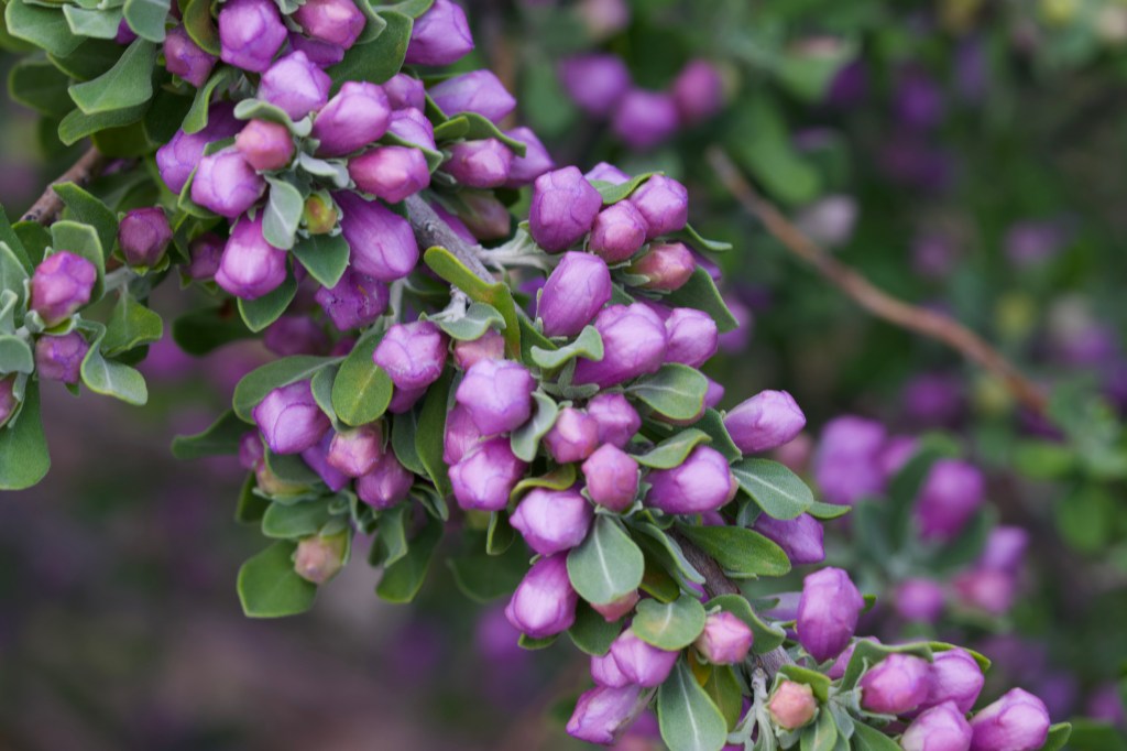 Desert sage. Humidity triggers the bush to flower, and the entire bush flowers at one time. These should open tomorrow.