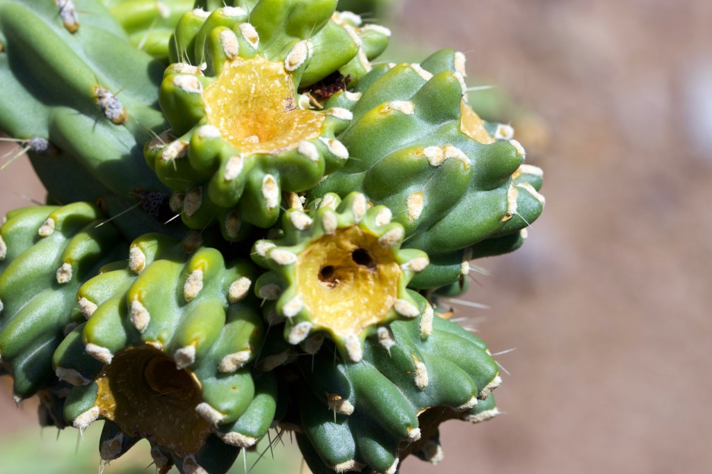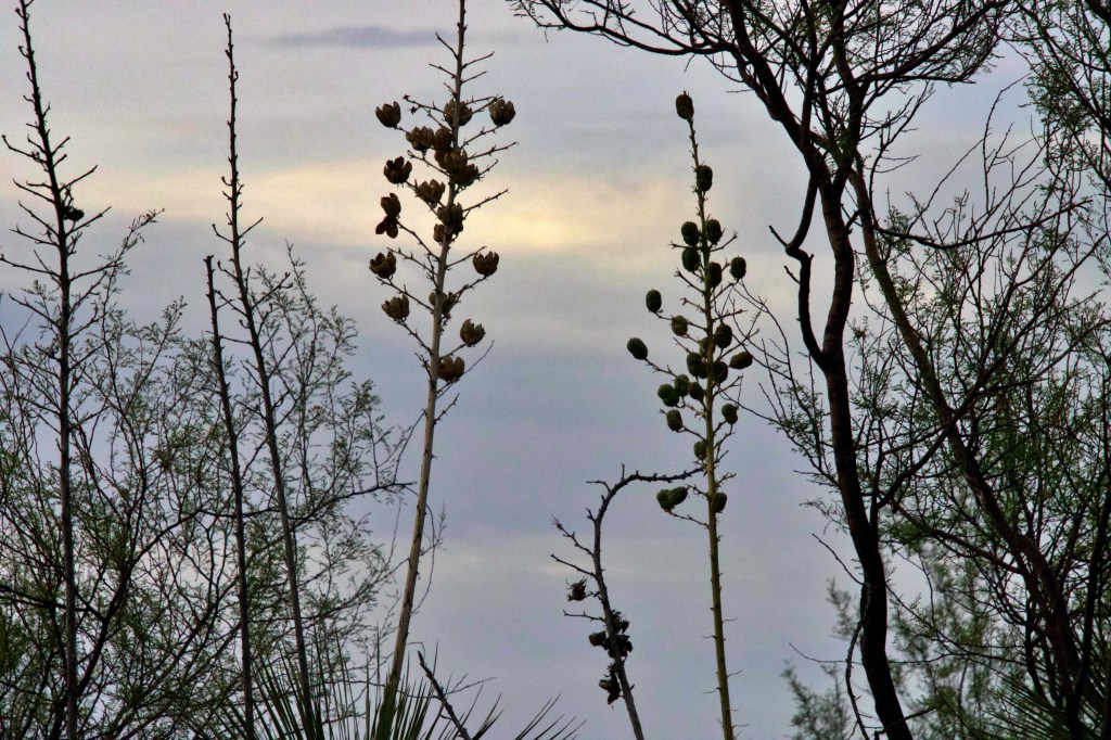 I used the macro lens today and the above is what’s left after the flowers fall off the cholla. It’s an odd looking cactus and the spines are vicious.