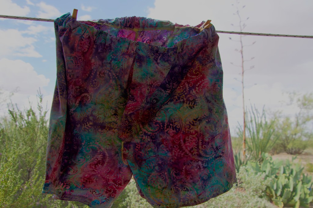 To sell fabric designs on Spoonflower, the designs have to be proofed. I use the economical 30 designs on a length of fabric to proof designs. I think I found a good use for the fabric. Quilt backing and making boxers for Jim. The only sewing I feel like doing is making boxers so I’ve been using up leftover fabric for Jim’s boxers. He’s used to getting a leg of this and a leg of that.