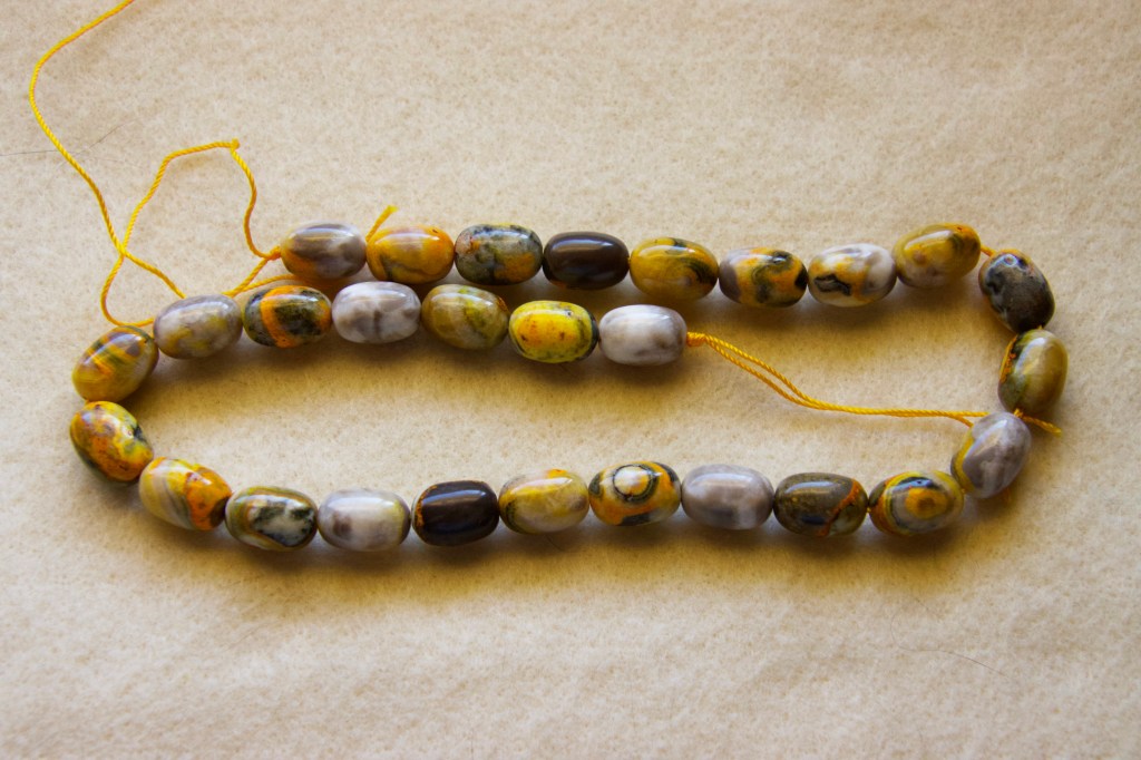 Bumble bee jasper. These are beads the clerk recommended, and I’m fascinated by the colors.