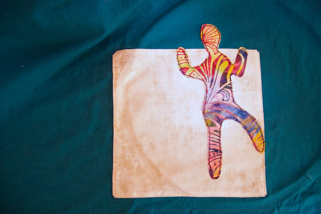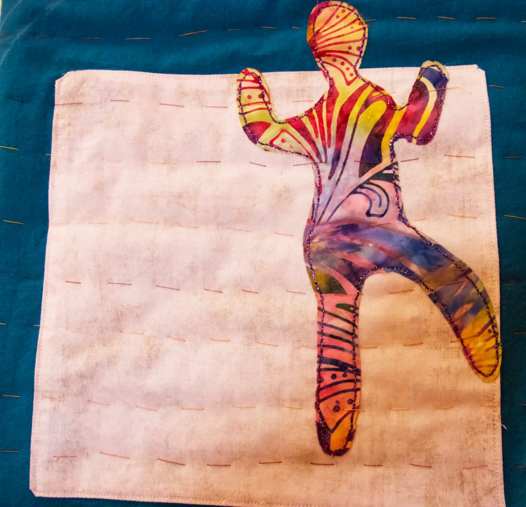 This is the lone detail on the isolation quilt. I know how I want to quilt the rest of the piece, but I haven’t decided how I want to quilt this part. I think I want to outline the figure, but I don’t know what I want to do with the box. I don’t think I want the box to recede and I know I don’t want a lot of detailed quilting in the box. I’ve basted the quilt so it’s ready to be quilted. I just need the quilt to talk to me about this portion.