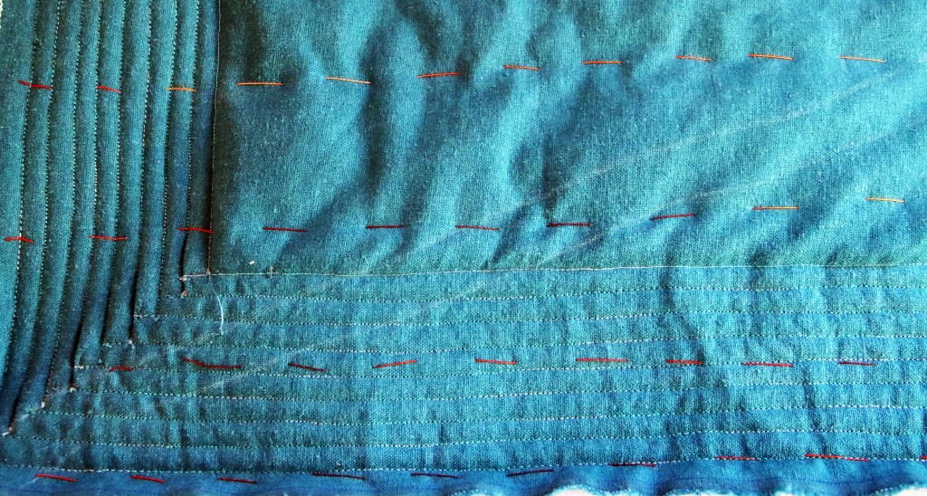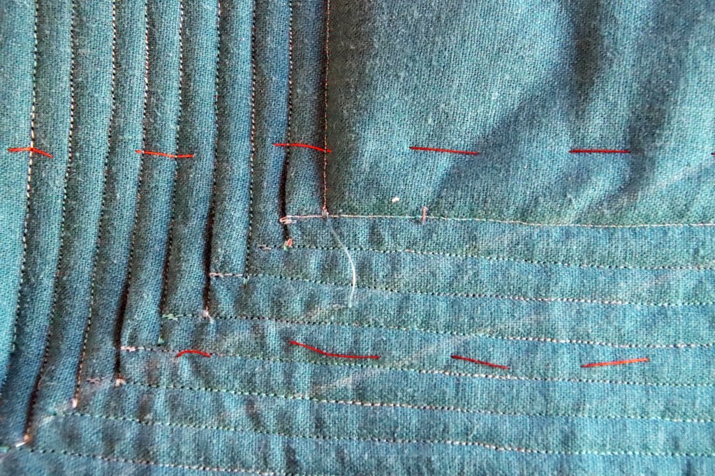 The hard part is deciding what to do with the quilting for the rest of the quilt. The original idea was to do narrow quilting. Rather than have sharp corners on the quilting, I decided to stagger the lines.