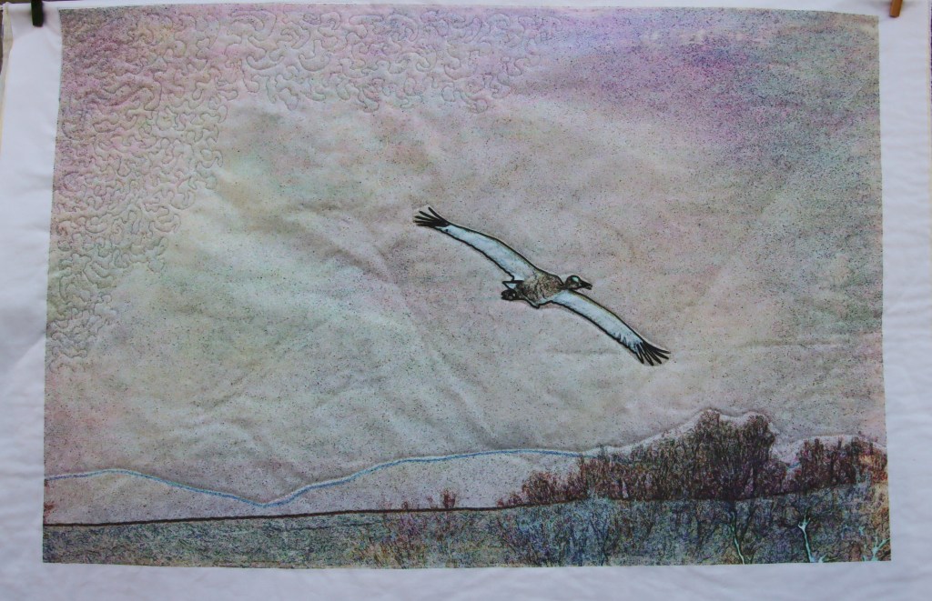I need to finish quilting this one. It’s a manipulated photo from a happy day. A day when we could go to Bosque del Apache and I could photograph sandhill cranes.