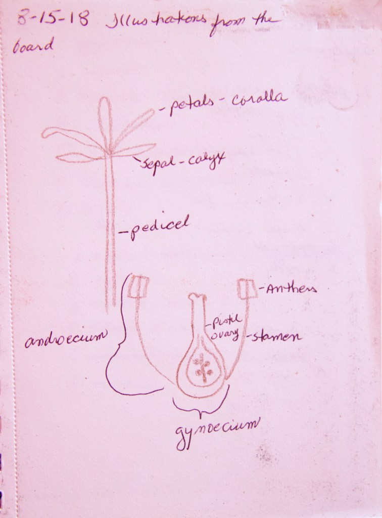 I have a sketch book that contains the drawings from a plant taxonomy class I took, reminders for what to put into the novel, and quilt sketches. I’m a multi-media artists, and my sketchbook reflects that.