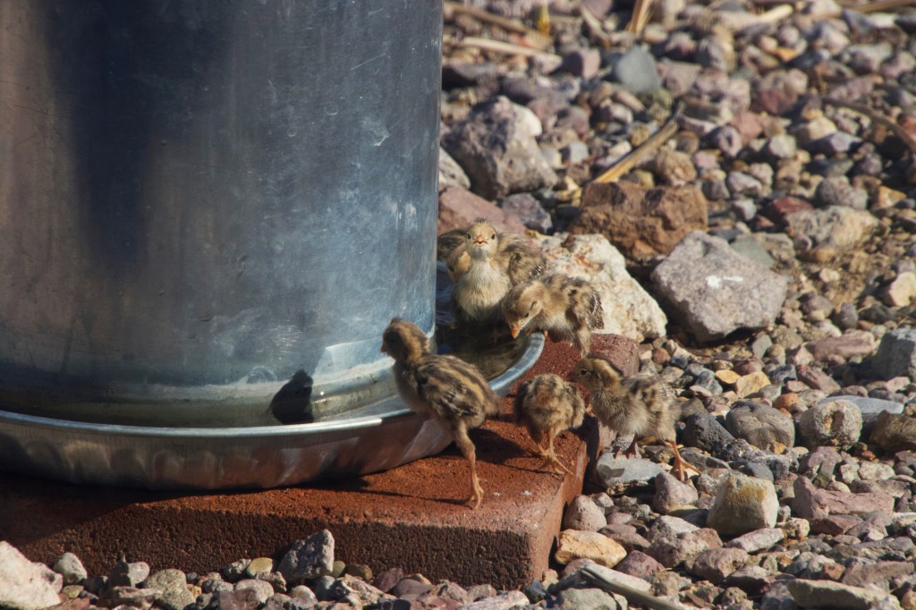 The original shot. While this is the quail version of Where’s Waldo, it’s easy to see how tiny day-old quail are.