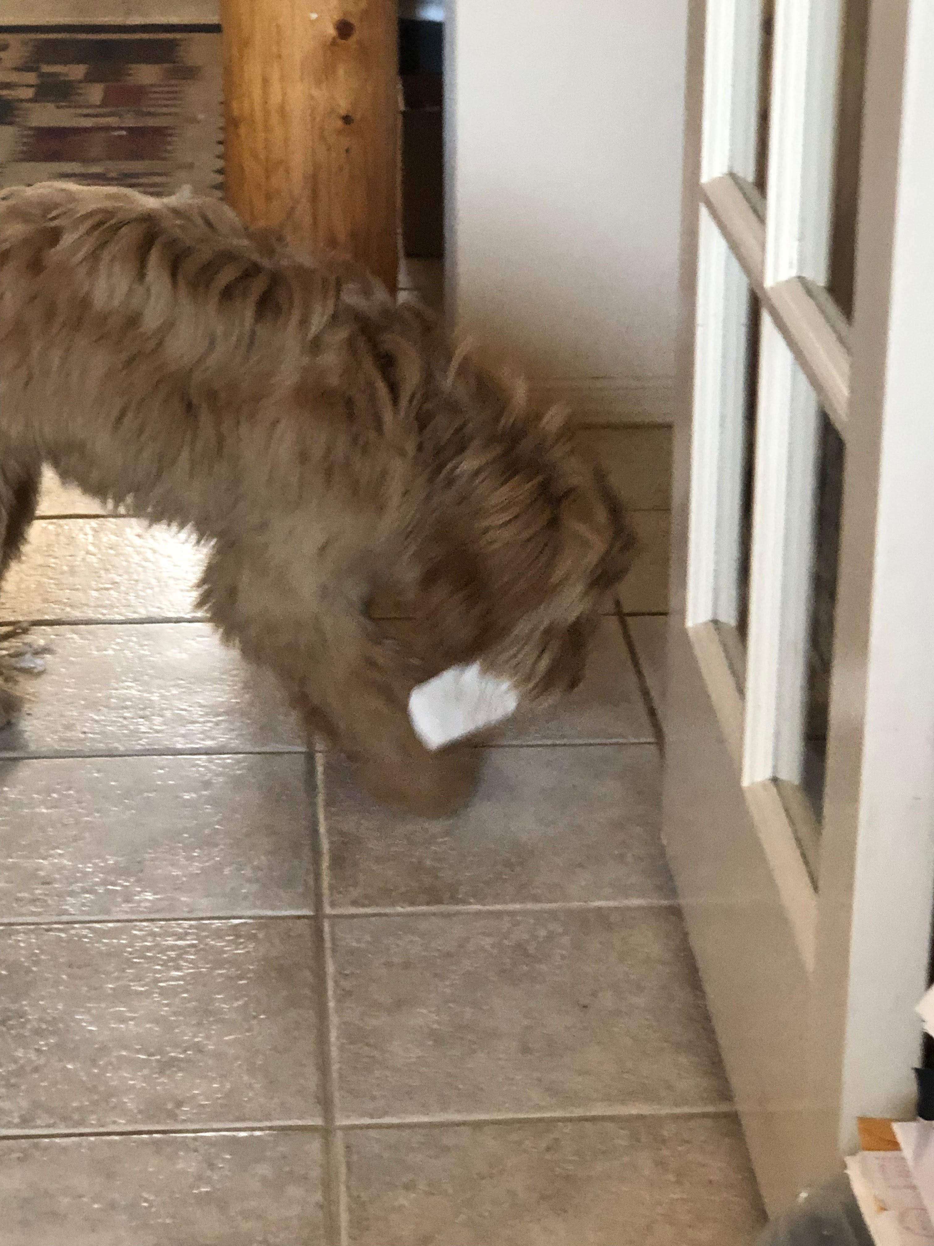 Brady ate dental floss yesterday. Dental floss can be deadly. We gently squirted hydrogen peroxide down her throat to make her throw up. After she threw up, I had to take a stick and fish in her vomit until I found the dental floss. It was a terrifying hour before the crisis was over.