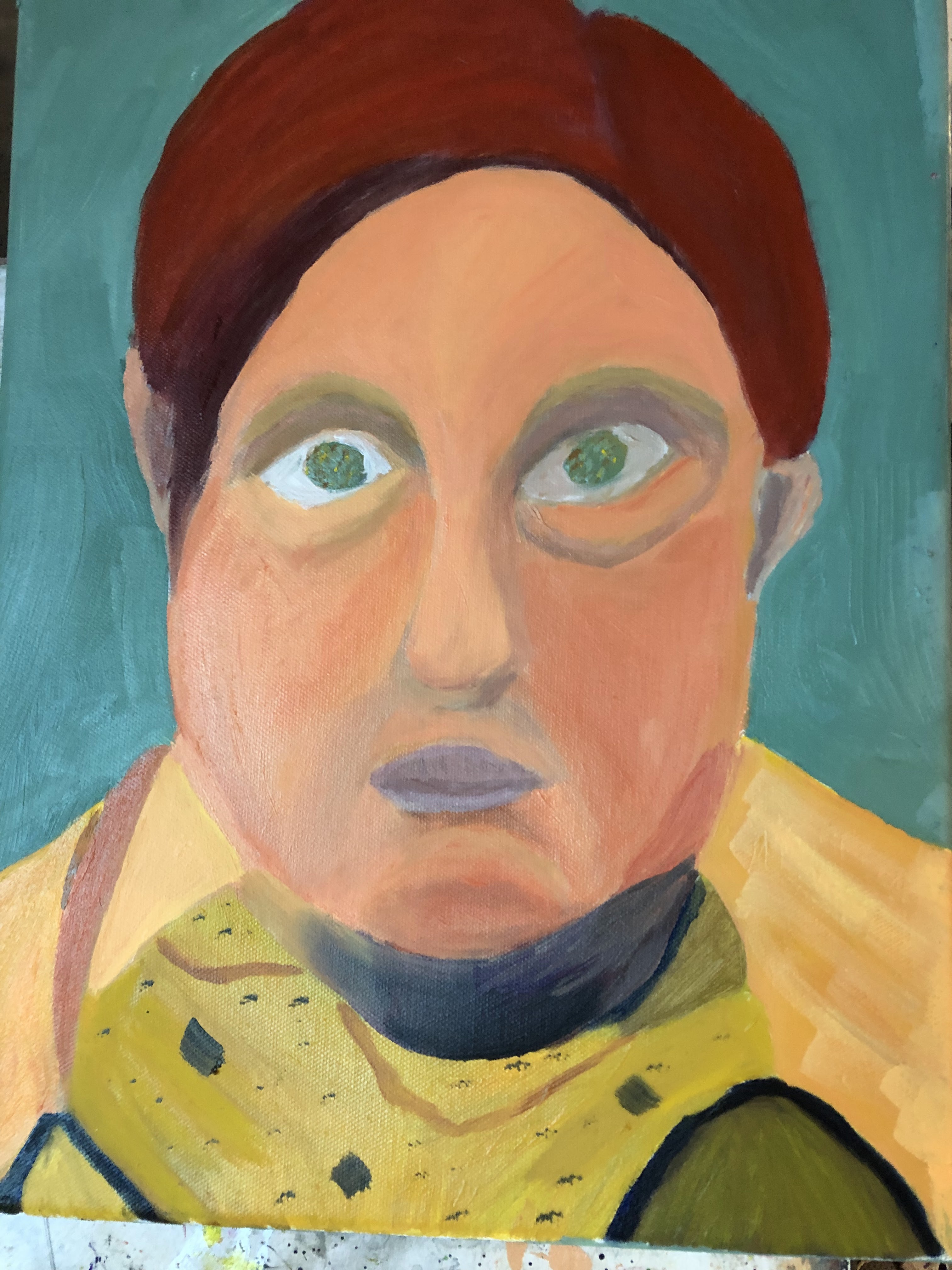 Odd bits of art this week. First, I got the self portraits done for my painting class.