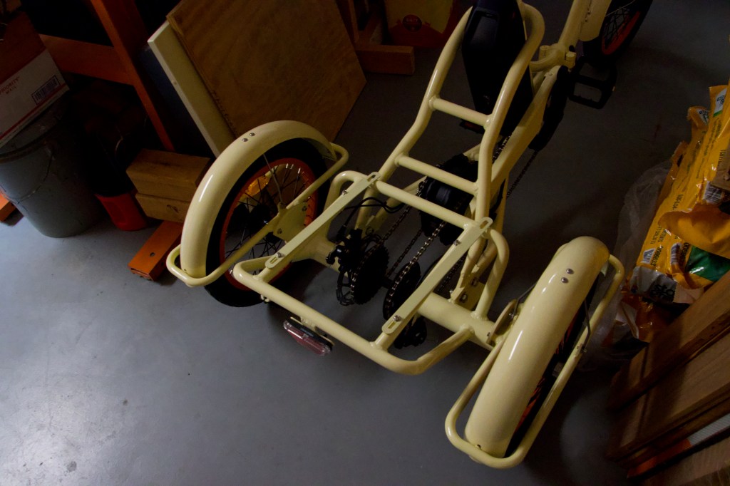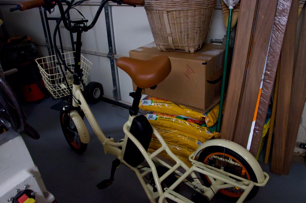 Along with being more stable than a two-wheeler just because there are three wheels, this bike has a lower center of gravity to add even more stability. There’s a basket for the back of the bike. I’m looking forward to doing some exploring with this bike. Of course I’ll need to have something pithy embroidered on the front of a tee shirt now that I’ll be a bad-ass bike rider. Perhaps a flaming skull.