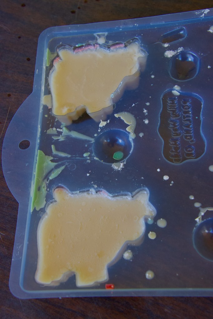 After the soap hardens, I’ll put it in a plastic bag to keep under the sink until I need to use the soap.