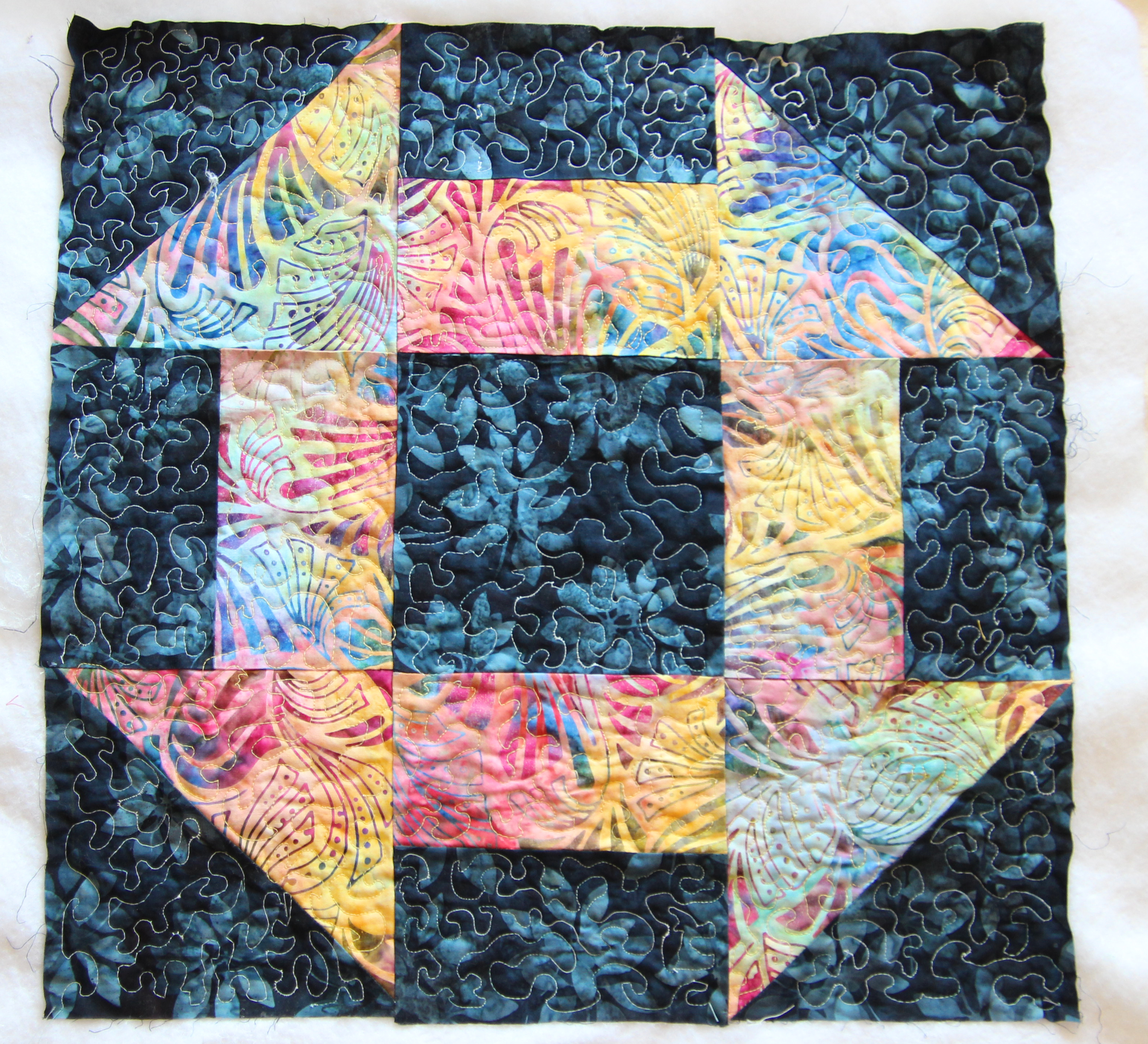 I’ve been working on quilted pillow tops using traditional quilt patterns. I’m still having some cognitive problems and I’m hoping that by using tradition, simple patterns I can get all my sewing skills back. At least now I can remember how to thread the machine and how to lower the feed dogs.