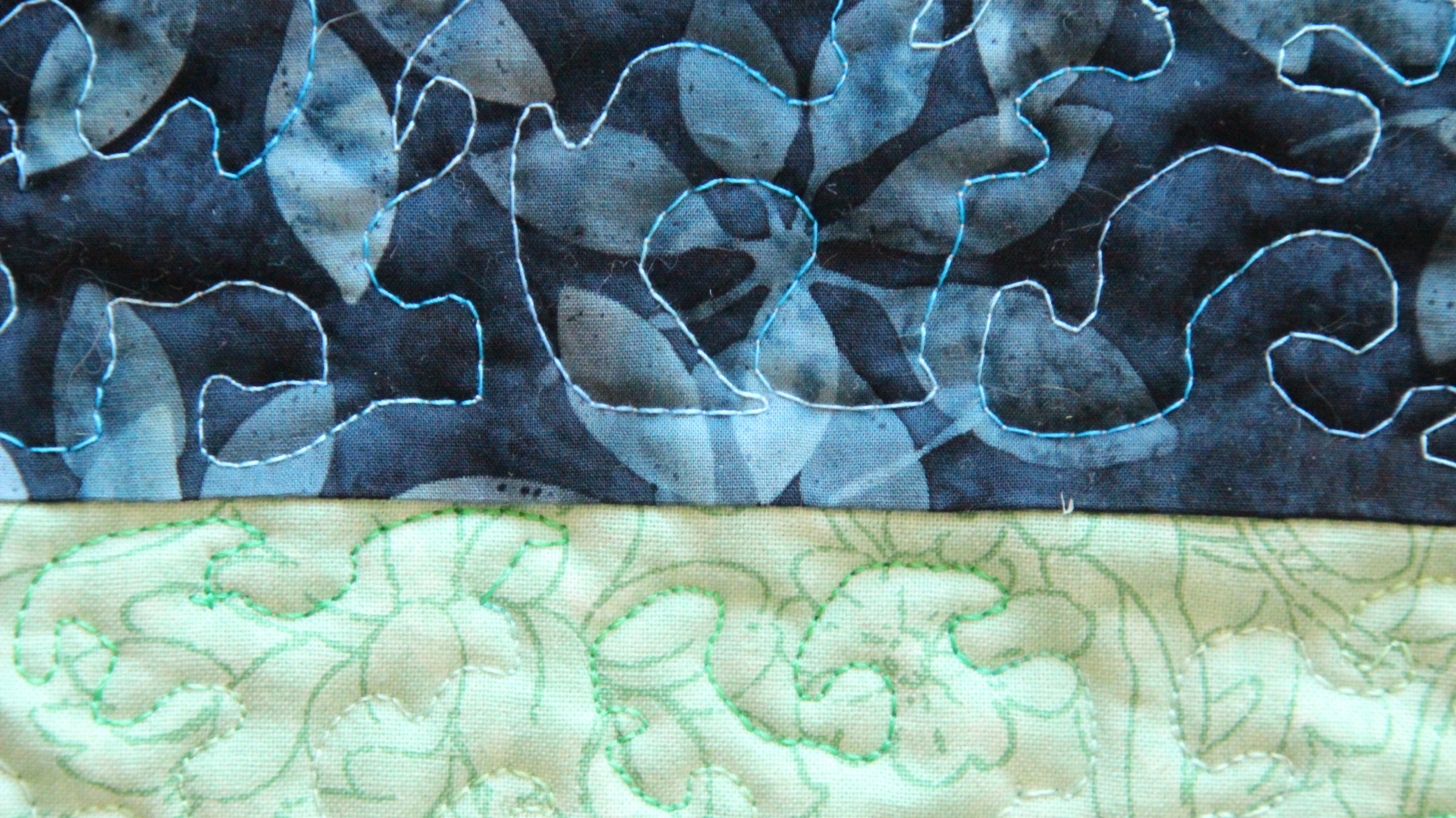 This is for a quilt about suicide. A year ago, someone I knew committed suicide. Since then, I’ve written my feelings, I’ve quilted my feelings, I’ve lectured about suicide, and I’m still trying to find reasons why. What was happening in this person’s life that was so horrible that death was preferable? I want the universe to make sense. I know from all the biology classes I’ve taken and all the times I’ve stared into a microscope that there’s a phenomenal amount of order in the universe. I can’t find the order in suicide. I know it’s there; I just can’t find it. Maybe suicide is the entropy all things are rushing towards.