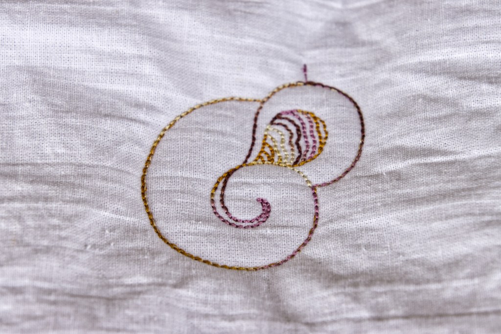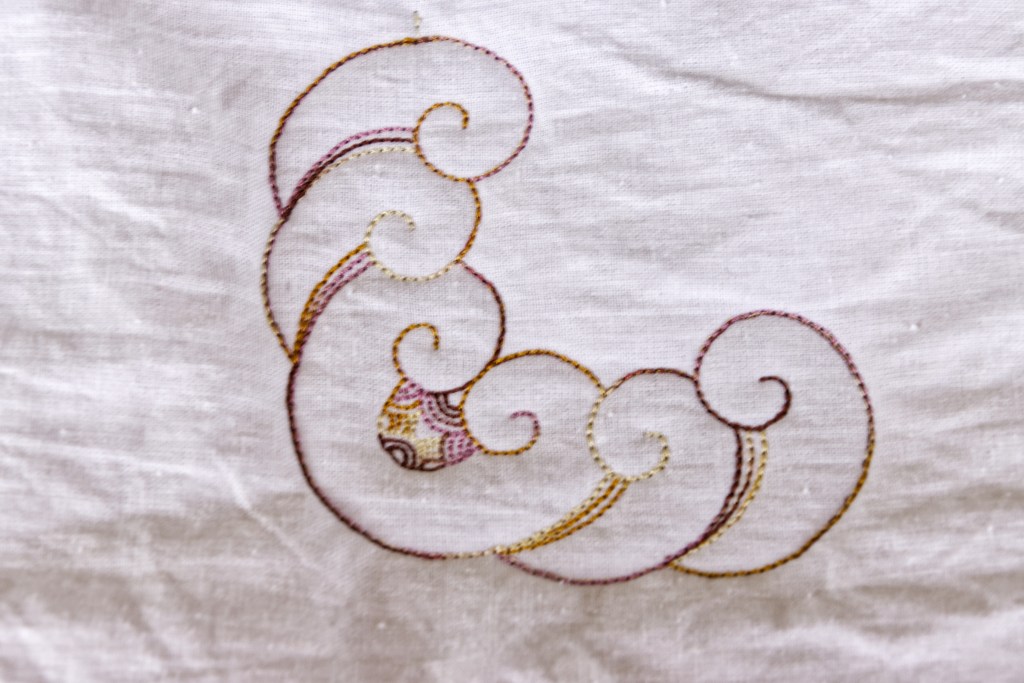 I hand dyed fabric to make a blouse. I decided this would be a nice design to embroider on the blouse. I doubt I’ll use these colors, but I did get an idea of what I wanted.