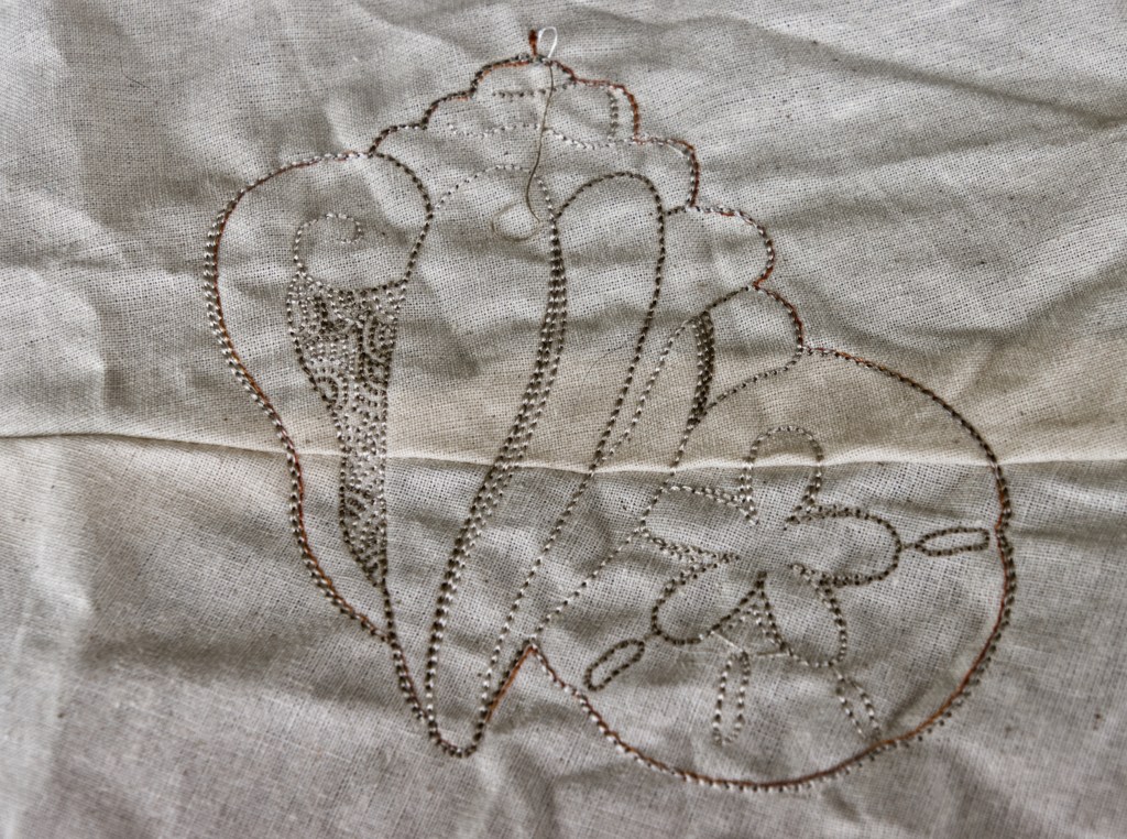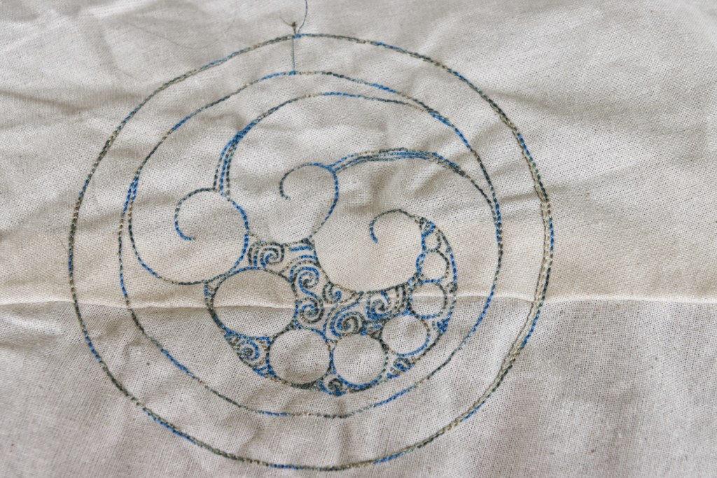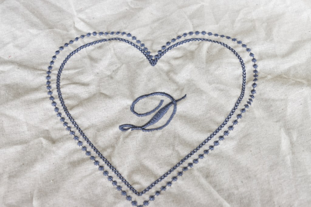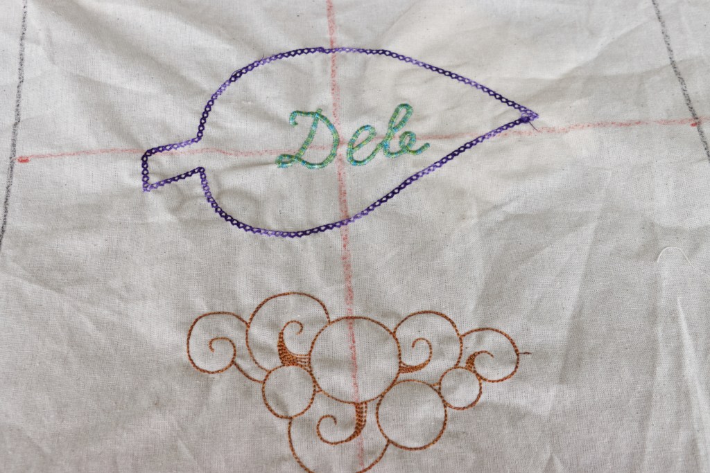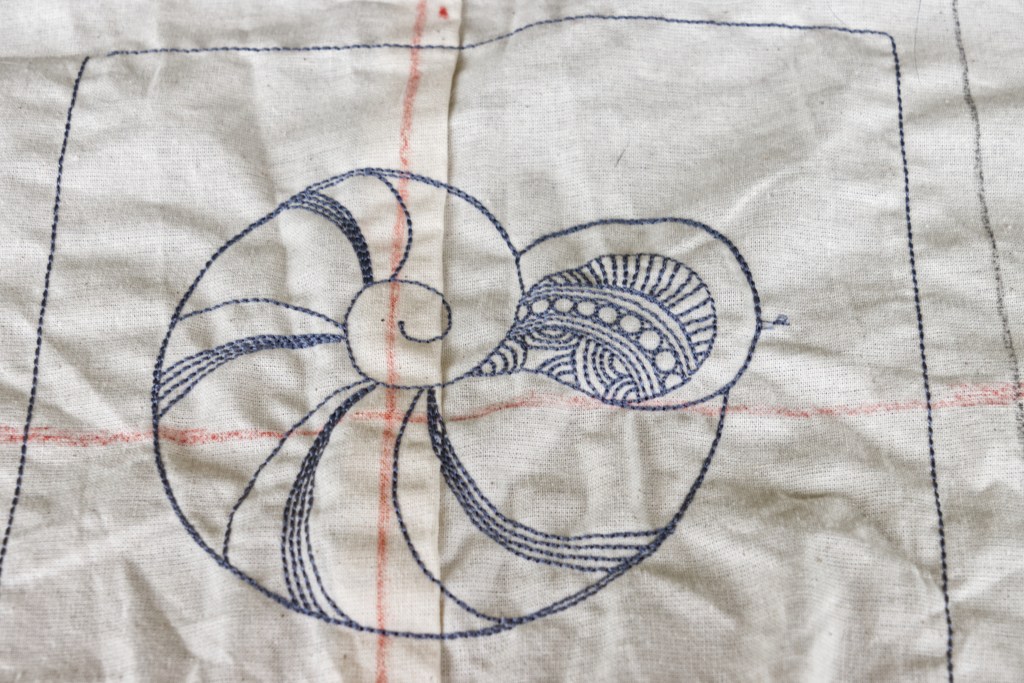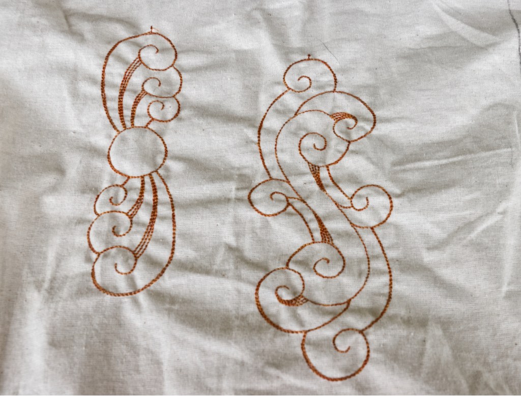 I used some scrap fabric and some thread that I’m not in love with to see how big the designs are and how they look when made.
