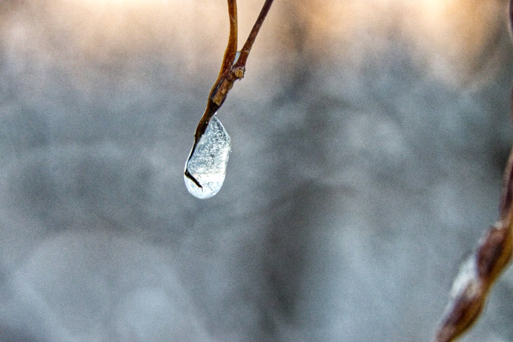 We don’t get icicles here but sometimes there are ice drops on the ends of twigs, leaves and cactus spines.